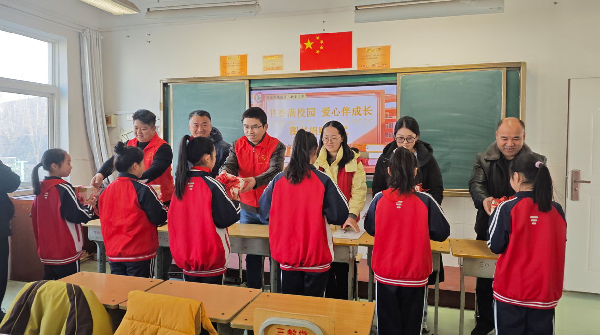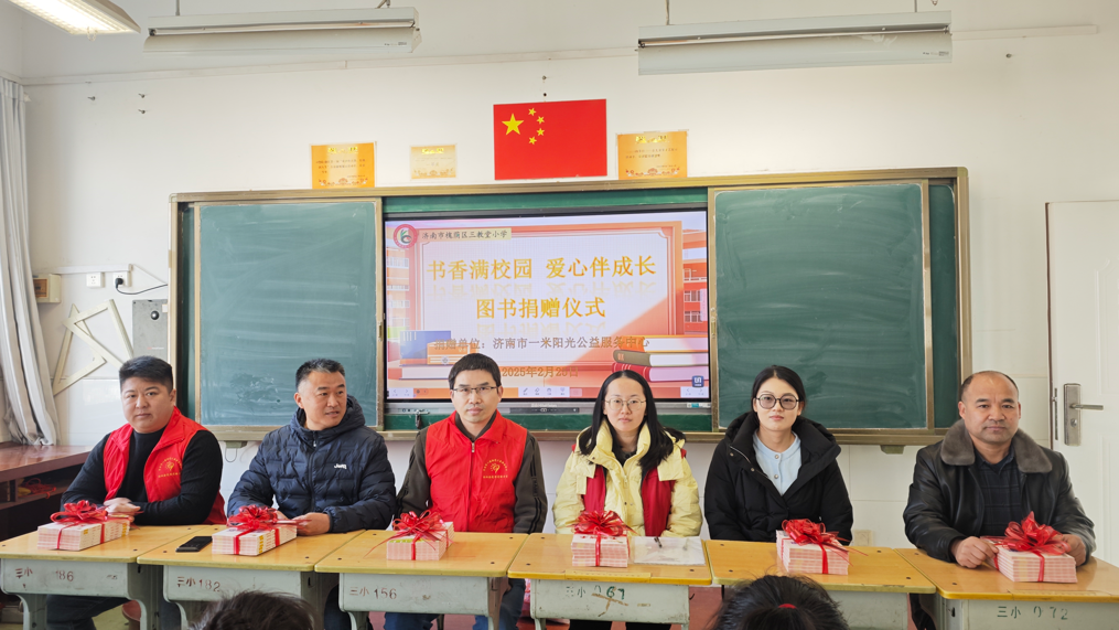 二、多方聚力共筑书香校园 捐赠仪式现场布置温馨,整齐码放的书籍被系上红色绸带,吴家堡街道民生事务办公室、三教堂小学、梦想图书馆项目组及社工站共同参与。学生代表以热情洋溢的开场白拉开仪式序幕,阐述了书籍对成长的意义。紧接着在热烈的掌声中,学生代表们依次上台领书,脸上洋溢着喜悦和期待。捐赠仪式结束后,学校领导对本次捐赠活动的支持机构表示衷心感谢,强调书籍是知识的灯塔,照亮孩子们前行的道路,不仅为学校带来了丰富的精神食粮,更是为孩子们打开了通往广阔世界的大门,是对教育的投资,也是对社区未来的深切关怀。